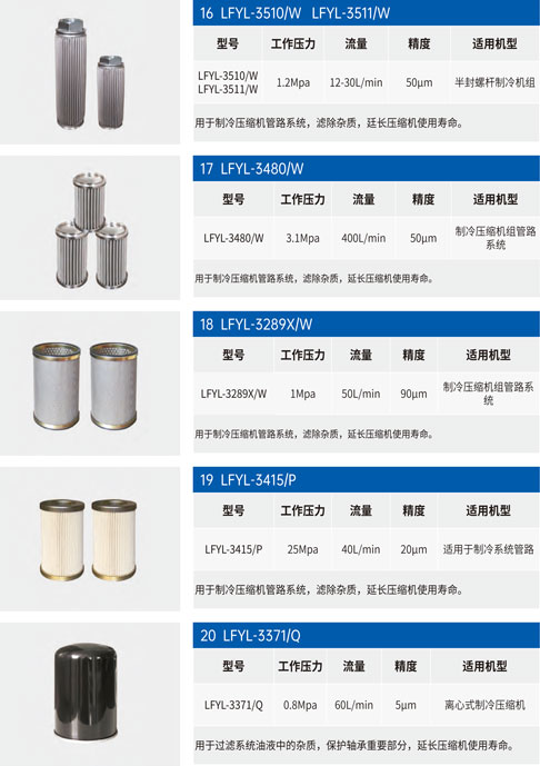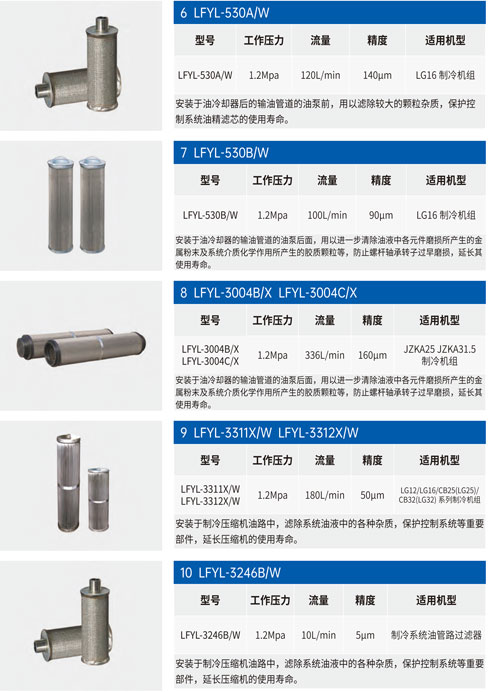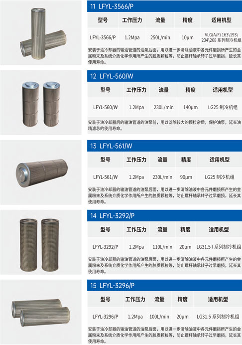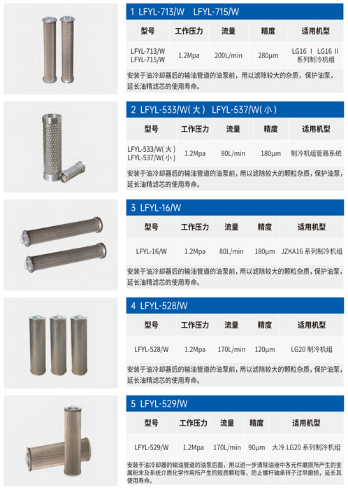 制冷過濾器濾芯安裝于油冷卻器后的輸油管道的油泵前,用以濾除較大的雜質,保護油泵,延長油精濾芯的使用壽命。
